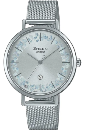 Японские часы Casio Sheen (Касио шин), кварцевый механизм с высокой точностью. Текстурный циферблат циферблат украшен кристаллом Swarovski. Сапфировое стекло устойчивое к появлению царапин, обладающее высокой прозрачностью. Водозащита 50WR, позволит защитить корпус от случайных брызг или капель дождя. Корпуск из высококачественной стали. Браслет миланского плетения с регулируемой застежкой.