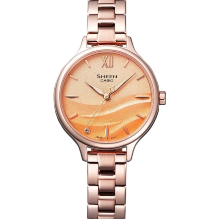 Японские часы Casio Sheen (Касио шин), кварцевый механизм с высокой точностью. Сапфировое стекло устойчивое к появлению царапин, обладающее высокой прозрачностью. Водозащита 50WR, позволит защитить корпус от случайных брызг или капель дождя. Корпуск из высококачественной стали на стальном браслете.