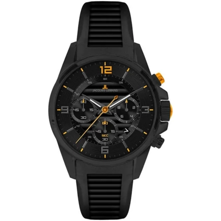 Практичный хронограф выполненный в современном дизайне, великолепный выбор для ценителей динамичного образа жизни. Liverpool. Часы-хронограф с секундомером. Заводная головка с защитой. Страна происхождения бренда Австрия, тип механизма кварцевые, секундная стрелка +, источник хода (питания) батарейка, тип циферблата стрелочный, разметка циферблата арабские, цвет черный, подсветка люминесцентное покрытие, функции и возможности дата (число месяца), хронограф, форма корпуса круглая, материал корпуса нержавеющая сталь, цвет корпуса черный, материал стекла минеральное, ремешок каучук, цвет ремешка черный, застежка классическая (с пряжкой), водозащита 100 WR / 10 ATM,