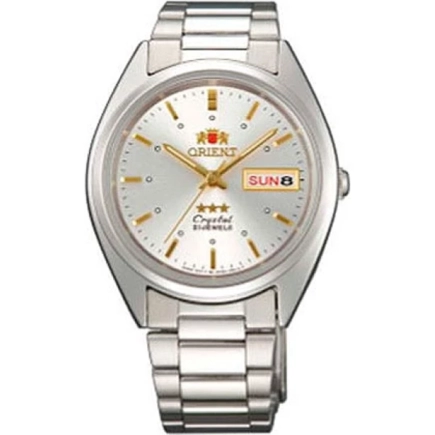 Мужские механические наручные часы с автоподзаводом Orient (Ориент) коллекции Three Star. Калибр механизма — AB(F49). Запас хода более сорока часов. Количество камней - 21. Максимально допустимая погрешность точности хода +25/-15 секунд в сутки. На данной модели отображается дата и день недели. Стрелки и метки покрыты люминесцентным напылением (светятся в темноте). На корпус и браслет нанесено стойкое PVD покрытие. Завинчивающаяся задняя крышка часов.