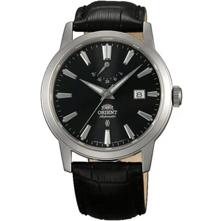 Мужские часы Orient с круглым стальным корпусом механические с автоподзаводом. В механизме 22 камня, частота 21600 полуколебаний в час. Запас хода 40 часов. Циферблат с метками в виде штрихов. Ремешок с классической застежкой. Завинчивающаяся задняя крышка